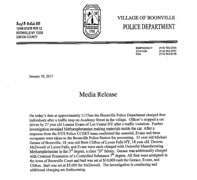 | Four Arrested on Meth Manufacturing Charge After Traffic Stop in Boonville 01/30/17 09:00pm Updated 01/31/17 3:00pm |