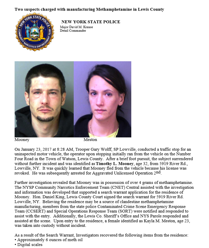 | Two Suspects Charged With Manufacturing Meth in Lewis County 01/24/17 06:00pm |