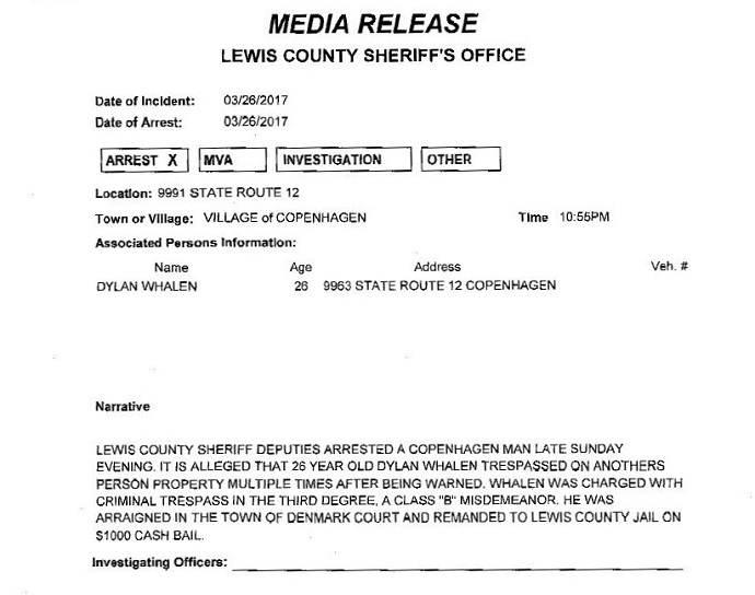 Copenhagen Man Jailed on Criminal Trespass Charge
