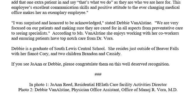| LCGH Announces December and January Employees of the Month 03/31/17 06:30pm |