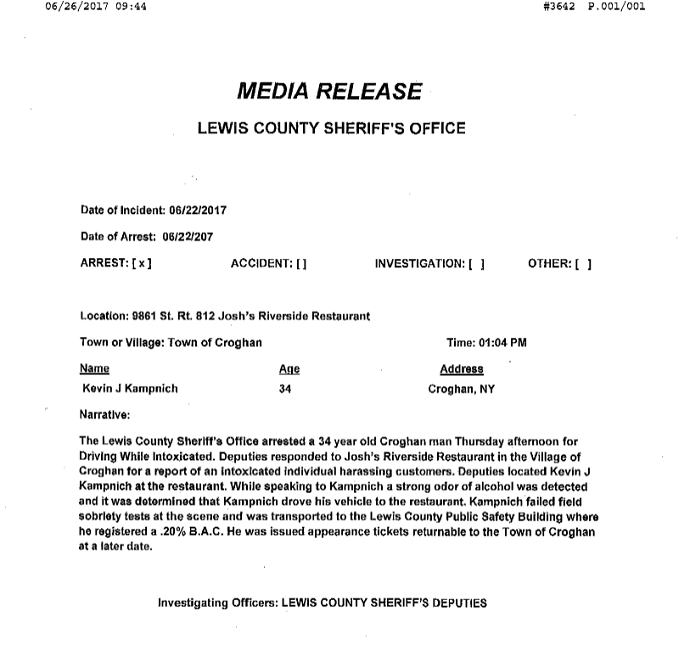 | LCSO: Croghan Man Charged With DWI After Recording .20 BAC 06/26/17 10:00am |