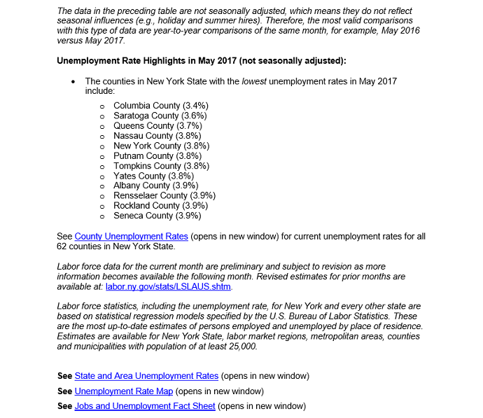 | NYS Department of Labor Releases May Unemployment Data 06/20/17 04:00pm |