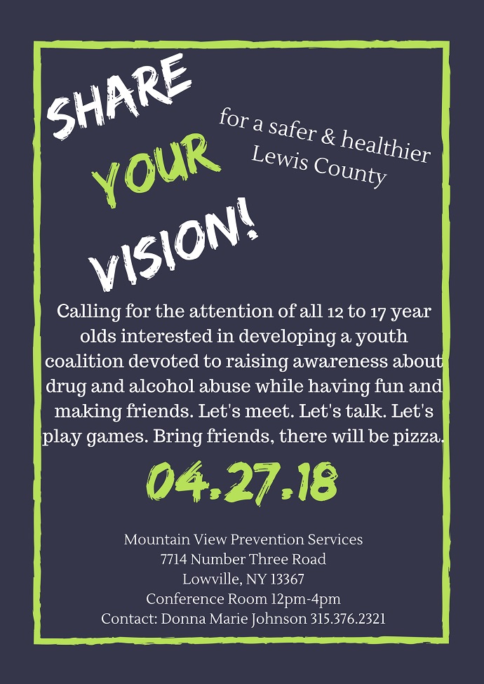 | Lewis County Youths Sought for Drug & Alcohol Abuse Awareness Coalition 04/11/18 01:45pm |