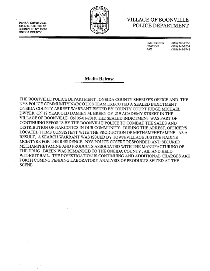 | BPD: Boonville Man Jailed Without Bail on Drug Charges 06/02/18 12:15am |