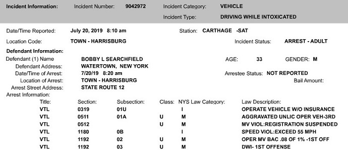NYSP: Watertown Man Arrested on DWI Charge in Harrisburg