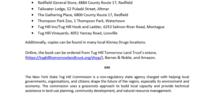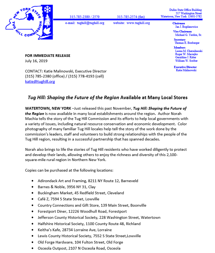 | Tug Hill: Shaping the Future of the Region Now Available at Many Local Stores July 27, 2019 01:00 p.m. |