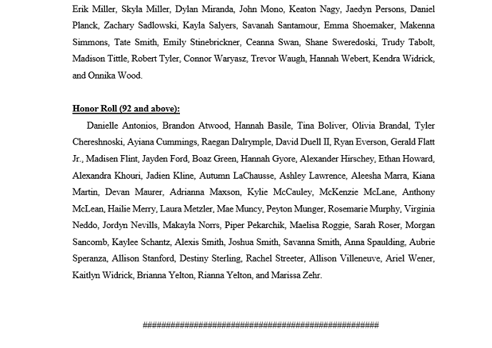 | BOCES Sackett Center Announces 1st Quarter Honor and Merit Roll Students November 09, 2020 01:45 p.m. |