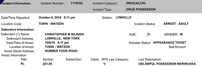 | NYSP Charge Two With Marijuana Possession in Separate Incidents 10/12/16 10:00am |