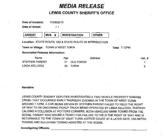 | Deputies Investigate Property Damage Accident in West Turin 12/09/16 05:50am |