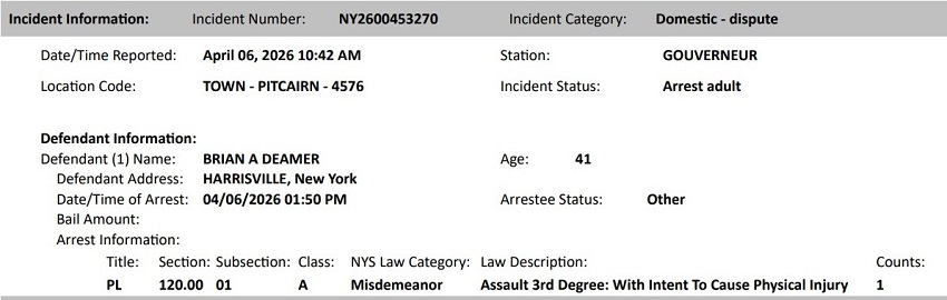 By: New York State Police Arrest Report