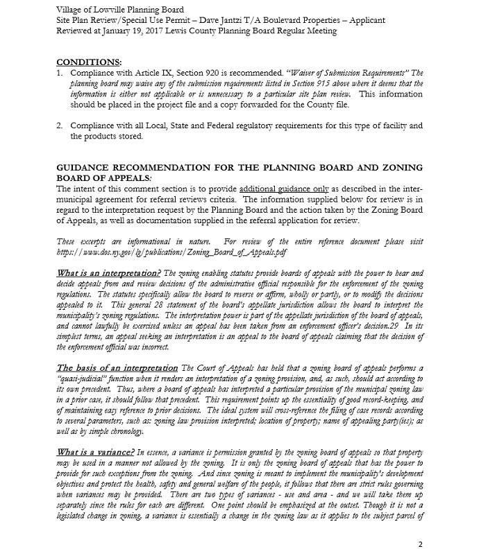 | County Planning Board Approves Two V/Lowville Projects, With Conditions 01/19/17 06:50pm |
