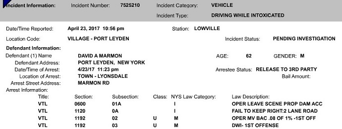 | Port Leyden Man Charged With Driving While Intoxicated 04/24/17 09:45am |