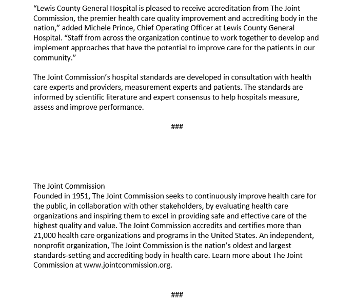 | LCGH Awarded Hospital Accreditation From the Joint Commission 09/26/17 09:00am |